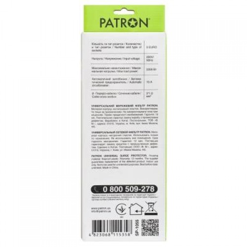 Сетевой фильтр Patron предназначен для подключения широкого спектра бытовой и компьютерной техники. Фильтр имеет универсальные розетки типа "евро" с заземлением и защищает электронную технику от короткого замыкания, перепадов напряжения и импульсных помех.